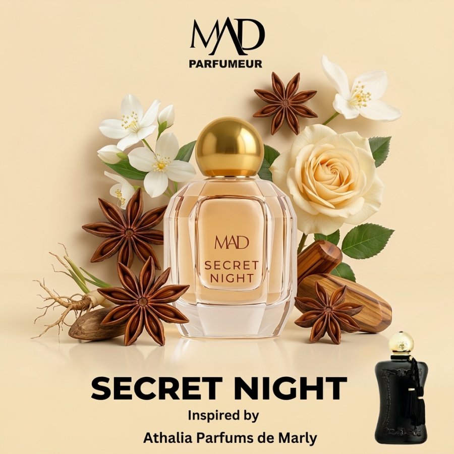 Mad Secret Night هو عطر يروي قصة ليل هادئ، حيث يلتقي الضوء بالظلال، والنعومة بالعمق.