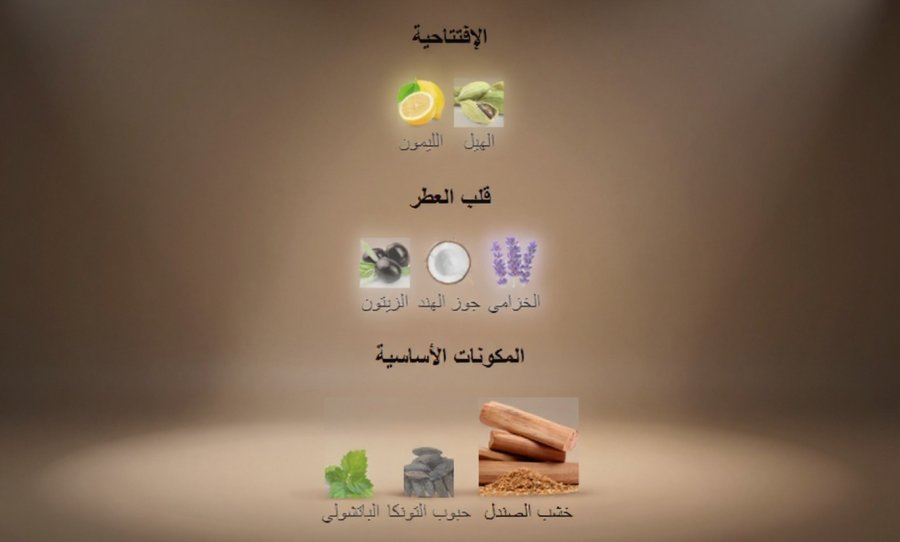 أما القاعدة فهي دافئة وثابتة، مكوّنة من خشب الصندل وحبوب التونكا والباتشولي، لتمنح العطر حضورًا قويًا وثباتًا طويل الأمد.